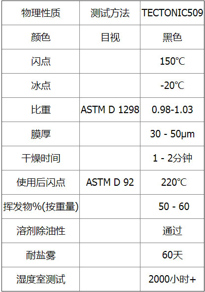 TECTONIC VCI509防銹分子疏水性強(qiáng),可通過形成的保護(hù)層延緩水分或水滲透。在抗酸性氣體方面,此防銹涂料具有防銹作用,比如:酸浸區(qū)域或海洋濕度等酸性環(huán)境下它可提供銹蝕保護(hù)。